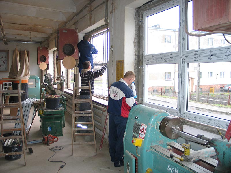 - Wymiana stolarki okiennej w budynku warsztatów szkolnych: