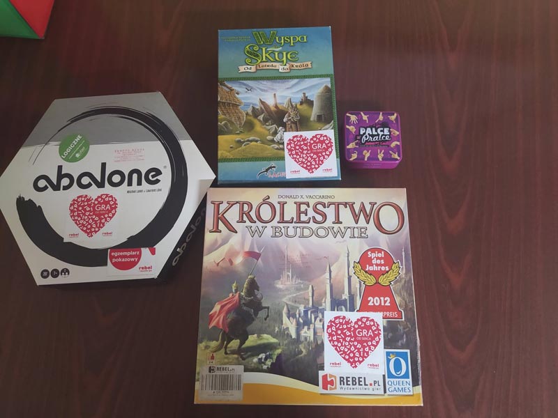 Od zeszłego roku szkolnego w Internacie funkcjonuje KOŁO GIER BEZ PRĄDU. Niektóre gry są własnością Internatu, a niektóre członków koła. W związku z chęcią zwiększenia naszej skromnej kolekcji zwróciliśmy się do firmy Rebel o wsparcie dla naszego koła. Jest to firma, która powstała dzięki dwóm pasjonatom gier planszowych z Trójmiasta. Firma Rebel bardzo entuzjastycznie podeszła do naszej prośby i przekazała nam w prezencie 4 gry: ABALONE, PALCE W PRALCE, WYSPA SKYE OD LAIKA DO KRÓLA, KRÓLESTWO W BUDOWIE. Dziękujemy serdecznie za przesłane gier dla całego Zespołu Rebela i zachęcamy uczniów, nauczycieli i rodziców do skorzystania z ich bogatej oferty gier, z którą można się zapoznać na stronie www.rebel.pl.